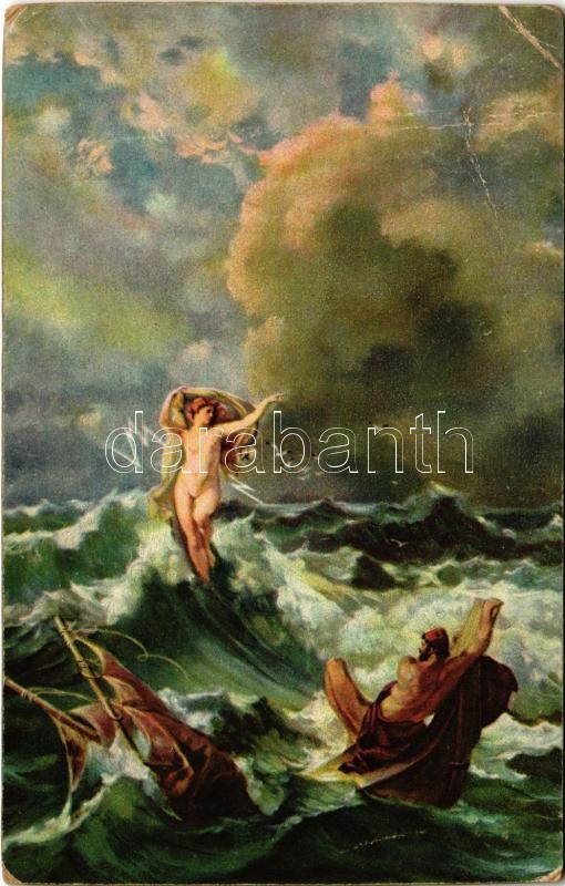 1924 Odysseus und Leukothea / Erotic nude lady art postcard. Stengel s: Preller (r)