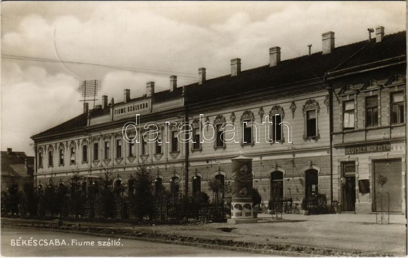1928 Békéscsaba, Hotel Fiume szálloda, Deutsch Mór és Társa üzlete, hi...