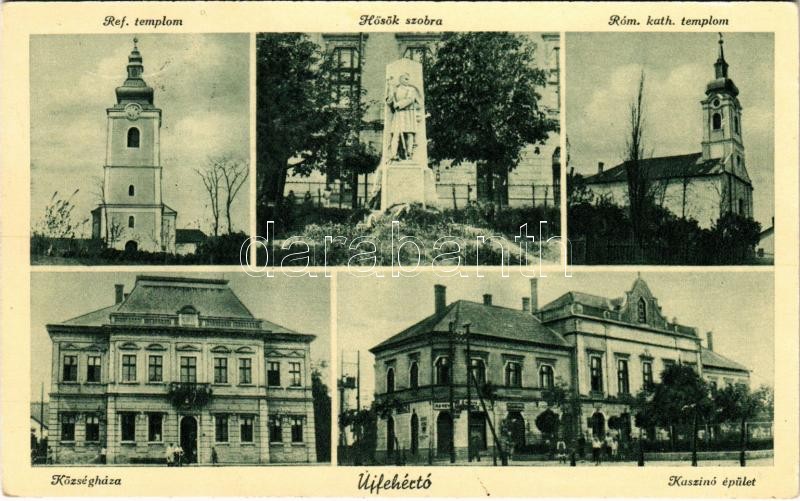 1942 Újfehértó, Református és római katolikus templom, Hősök szobra, községháza, kaszinó épülete