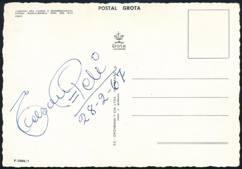 Description: 1967.II.28 Pelé, eredeti nevén Edson Arantes do Nascimento (1940-) háromszoros világbajnok brazil labdarúgó, minden idők egyik legnagyobb játékosának autográf aláírása, feltehetően a Vasas SC legendás dél-amerikai túrájának alkalmából, amikro a Hexagonal Tornán szerepelt / autograph