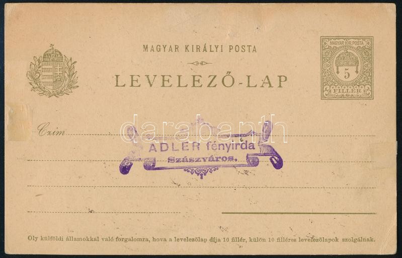 cca 1910 Adler fényirdájának bélyegzője egy levelezőlapon