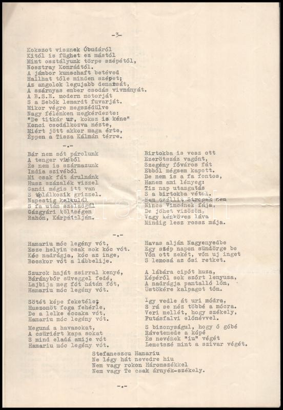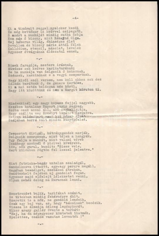 1941 Budapesti Gázművek belső használatra írt vers főnökökről, kollégákról sok humorral, Perényi Bélánétól, 6p