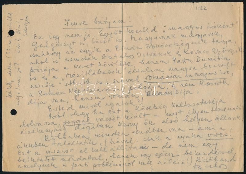 cca 1948 Asztalos István (1909-1960) író levele Varga Imre (1919-1989)...