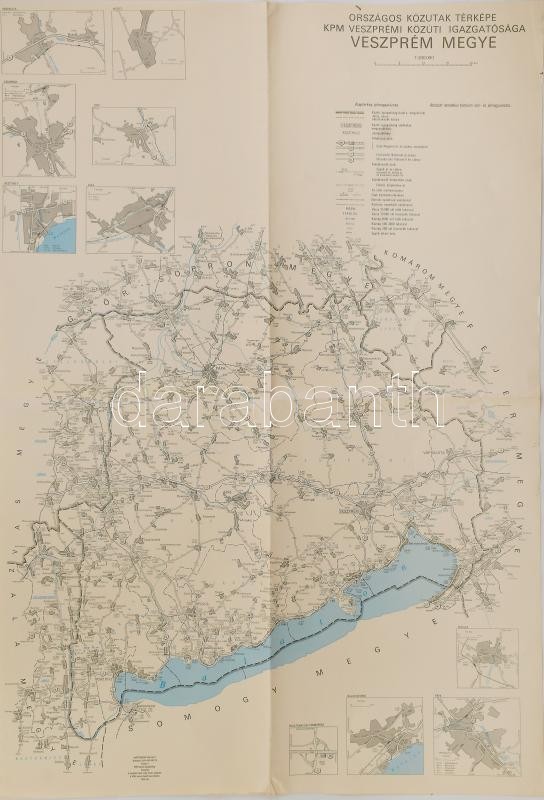5 db közút térkép az 1970-es évekből: Békés, Szolnok, Heves, Veszprém, Szabolcs megyék 80x58 cm