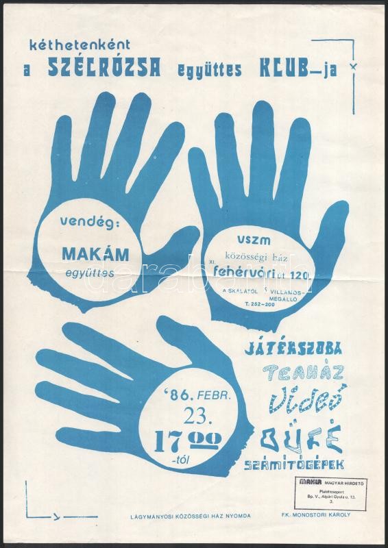 https://www.darabanth.com/en/418-Online-auction/418.0/Art-and-other-collectibles/Posters~1000003/1986-Kethetenkent-a-Szelrozsa-egyuttes-Klubja-plakat-41-5x30-cm~II2636831