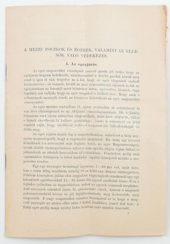 cca 1890 Mezei poczkok és egerek, valamint az ellenök való védekezés 38p