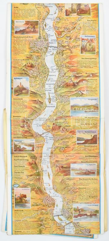 Description: cca 1950 Rheinlauf von Mainz bis Köln, ein Relief-Panorama / a Rajna Mainztól Kölnig, kihajtható, színes, illusztrált turisztikai prospektus, német nyelvű, kissé sérült, 154x19,5 cm