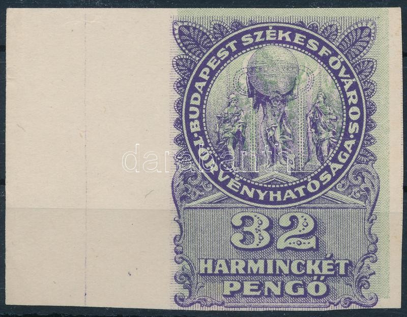 1932 Budapest városi illetékbélyeg próbanyomat, ívszéli