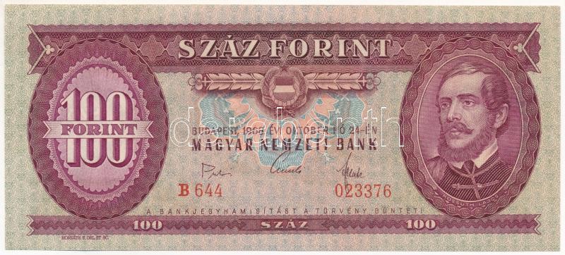 Hungary 1968. 100 Forint "B 644 023376" C:UNC