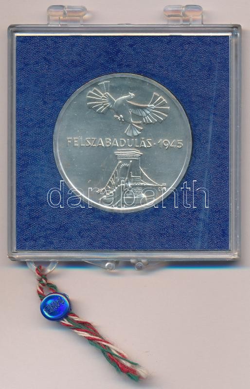 1975. 200Ft Ag "Felszabadulás" eredeti, kissé sérült "MNB" plasztiktok...