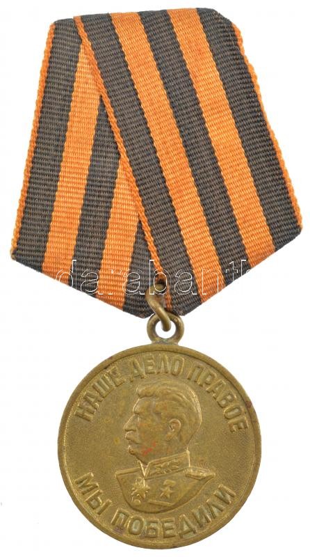 Description: Szovjetunió 1945. "A Németország felett aratott győzelemért az 1941-1945-ös Nagy Honvédő Háborúban" aranyozott sárgaréz kitüntetés mellszalaggal T:2 Soviet Union 1945. "Medal for the Victory over Germany in the Great Patriotic War 1941-1945" gold plated brass decoration with ribbon C:XF