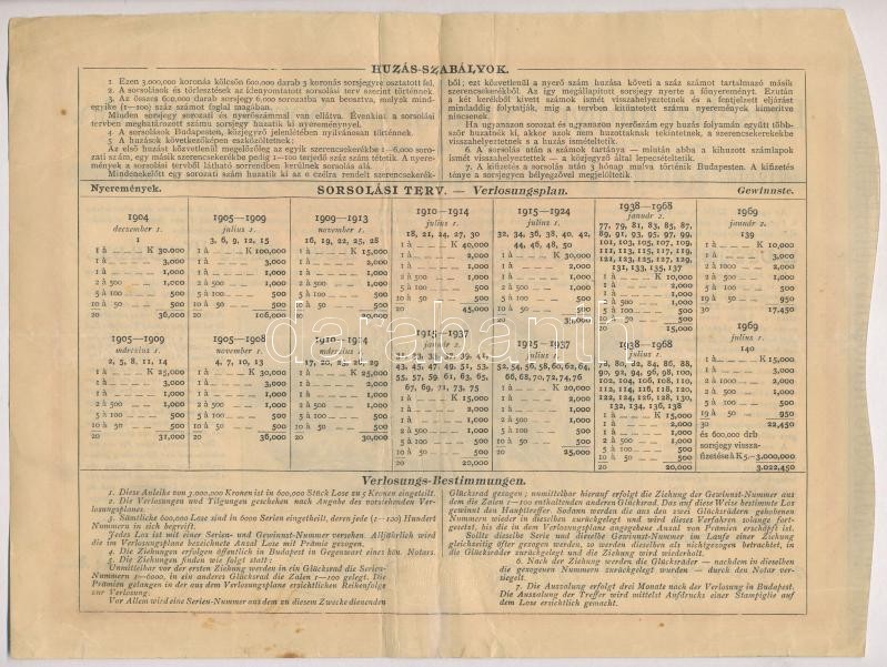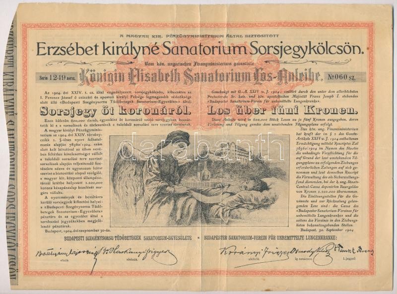Budapest 1904. "Erzsébet királyné Sanatorium Sorsjegykölcsön" sorsjegye 5K értékben, magyar és német nyelven, szárazpecséttel T:III
