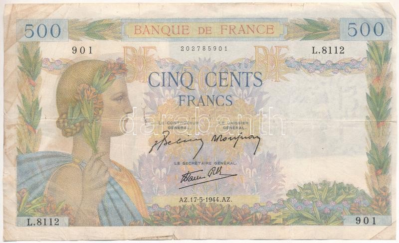https://www.darabanth.com/en/418-Online-auction/418.0/Numismatics/Worldwide-banknotes~2000014/Franciaorszag-1944-500Fr-TIII-kis-szakadasok-ly-France-1944-500-Francs-CF-small-tears-hole~II2634615