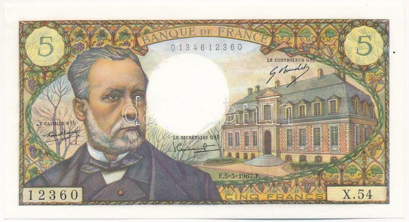 https://www.darabanth.com/en/418-Online-auction/418.0/Numismatics/Worldwide-banknotes~2000014/Franciaorszag-1967-5Fr-X54-12360-TII-hajtatlan-tuzogep-nyom-France-1967-5-Francs-X54-1~II2614834
