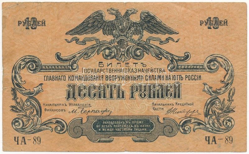 Orosz Polgárháború / A fegyveres erők főparancsnoksága 1919. 10R T:III... https://www.darabanth.com/en/418-Online-auction/418.0/Numismatics/Worldwide-banknotes~2000014/Orosz-Polgarhaboru-A-fegyveres-erok-foparancsnoksaga-1919-10R-TIII-kis-lyukak-szakadas-~II2639509