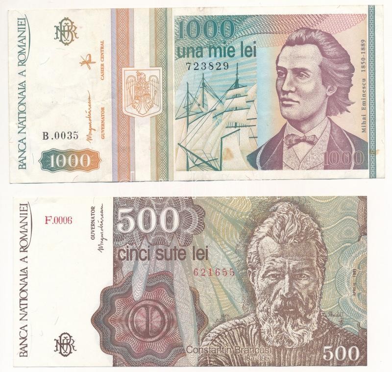 Románia 1991. 500L + 1993. 1000L T:I-,III