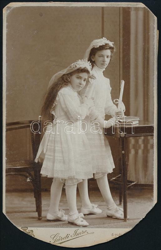 cca 1910 Elsőáldozó kislányok, keményhátú fotó Gárdi Imre budapesti mű...