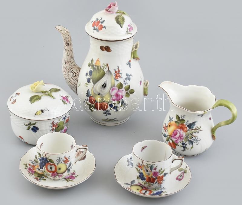 Herendi gyümölcsmintás vegyes tétel, kézzel festett porcelán, sérült, hiányos, jelzett, 1940-es évek.