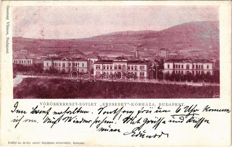 1898 (Vorläufer) Budapest XII. Vöröskereszt-Egylet Erzsébet kórház az ...