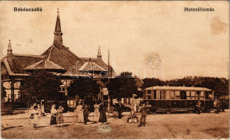 1915 Békéscsaba, motorállomás, városi vasút, kisvasút vasútállomás, vo...