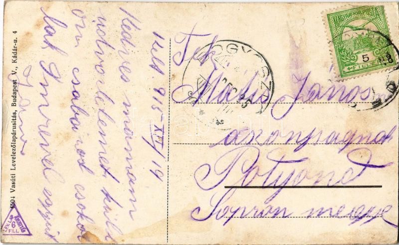 1915 Békéscsaba, motorállomás, városi vasút, kisvasút vasútállomás, vonat. Vasúti Levelezőlapárusítás 4504. (fl)