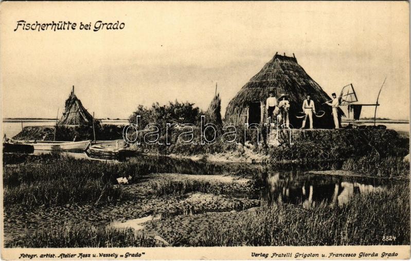Grado, Fischerhütte bei Grado / fishermen's huts. Fotogr. artist. Atelier Hesz u. Wessely. Verlag Fratelli Grigolon u. Francesco Giorda