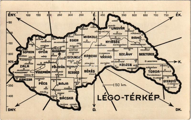 Magyarország légoltalmi körzetei térképen / WWII Hungarian military, passive air defence map (non PC)