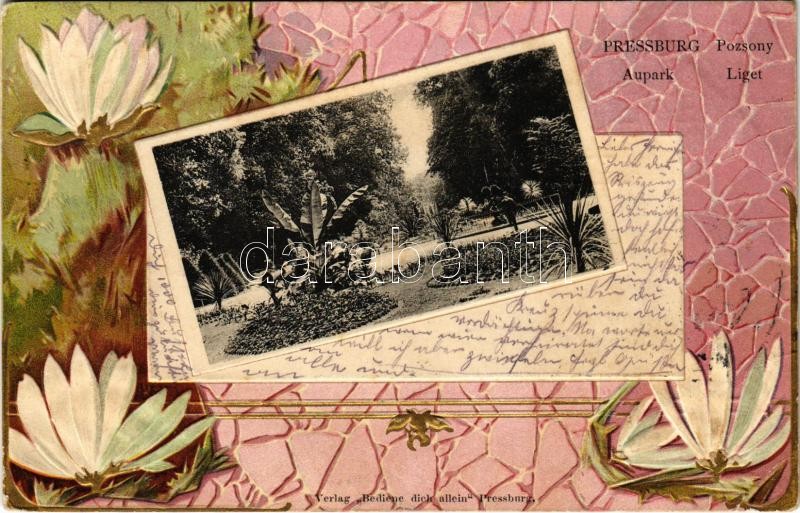 1903 Pozsony, Pressburg, Bratislava; liget. Szecessziós dombornyomott litho, Bediene dich allein / Aupark / park. Embossed Art Nouveau, litho (EK)