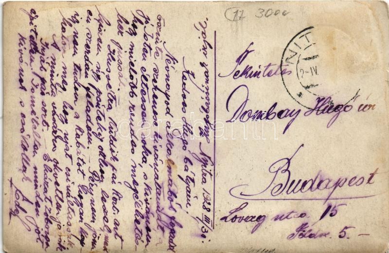 1928 Nyitra, Nitra; Dombay villa (?). Dombay Ede főjegyző levele / letter of Ede Dombay. photo