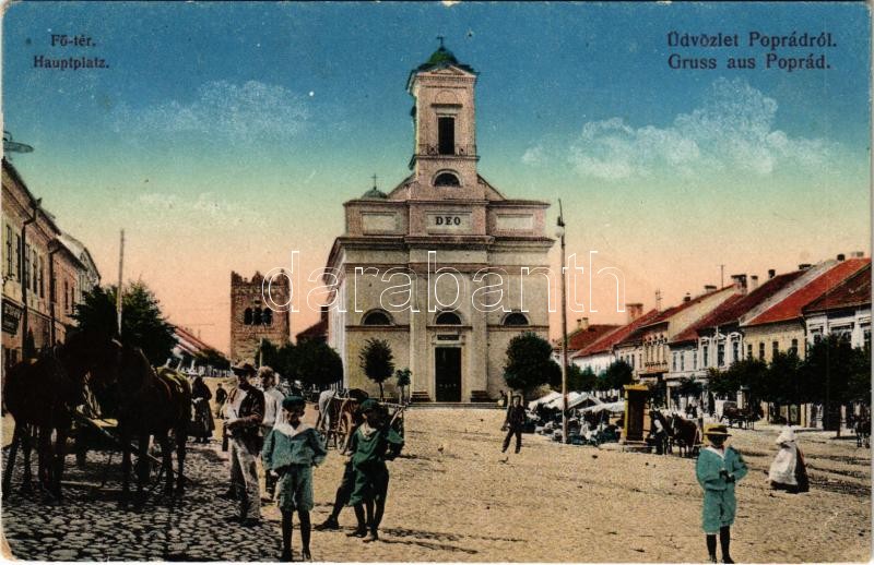 Poprád (Tátra), Fő tér, piac / main square, market (EK)