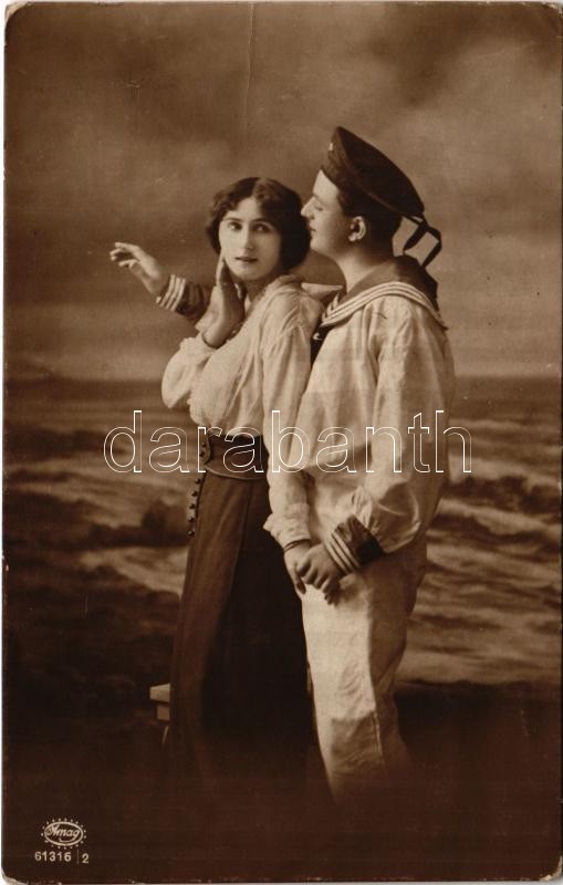 1916 Osztrák-magyar haditengerészet matróza a szerelmével / K.u.K. Kriegsmarine Matrose / Austro-Hungarian Navy mariner with his lover. Amag 61316/2 + "K.u.K. Marinefeldpostamt" + "K.u.K. Seebataillon Trieste II. Kompadnie" (fl)