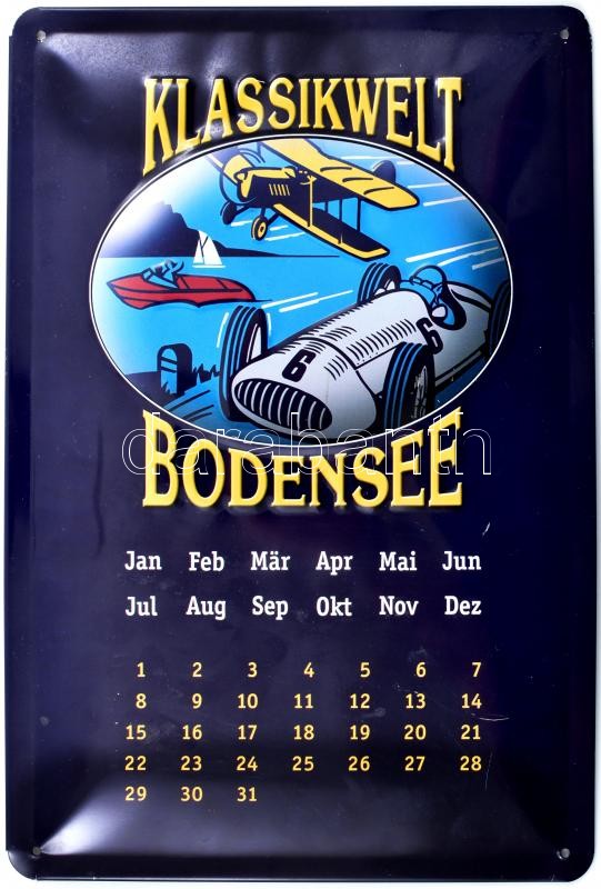 Fém tábla, Bodeni tó, év nélküli naptár, hátoldalán etikettel jelzett,...