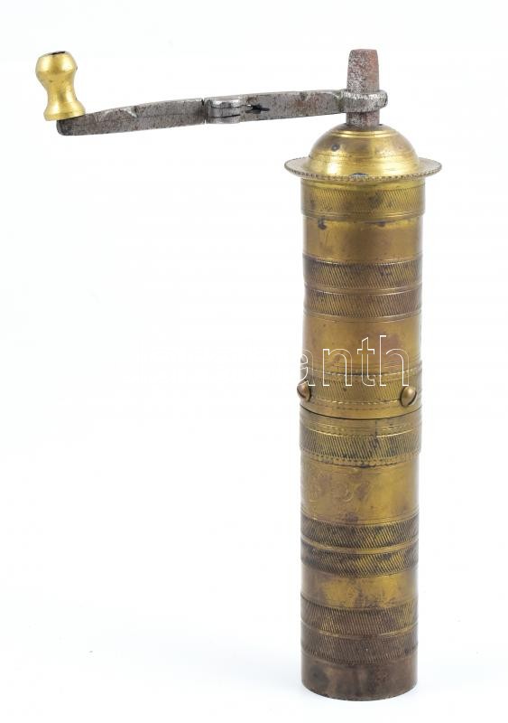 Török réz kávédaráló, jelzett, m: 23,5 cm
