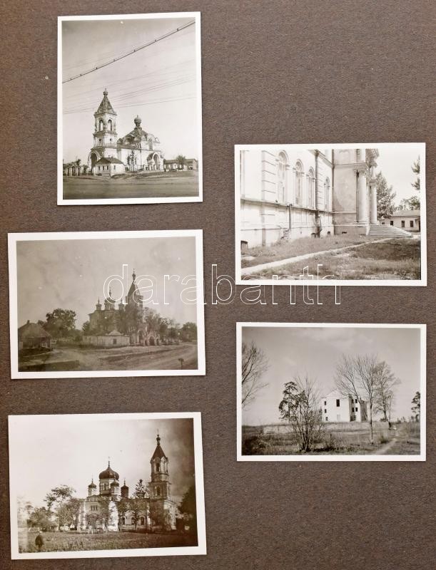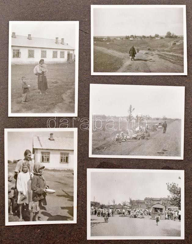 1941-1943 Dinnyés Lajos (1901-1961) kisgazda politikus, országgyűlési képviselő, későbbi miniszterelnök fotóalbuma, nagyrészt az orosz fronton (1941-1943) készült fotók, életképek, de katonaiak is. De benne 1914-es, első világháborús fotók (feltehetőleg az apjától), és 1938-as és 1947-es fotó is. Kb. 110 db fotó, későbbi vászon fotómappában, családtag által feliratozva, különféle méretben, sérült kötéssel, laza fűzéssel, de maguk a fotók jó állapotban.