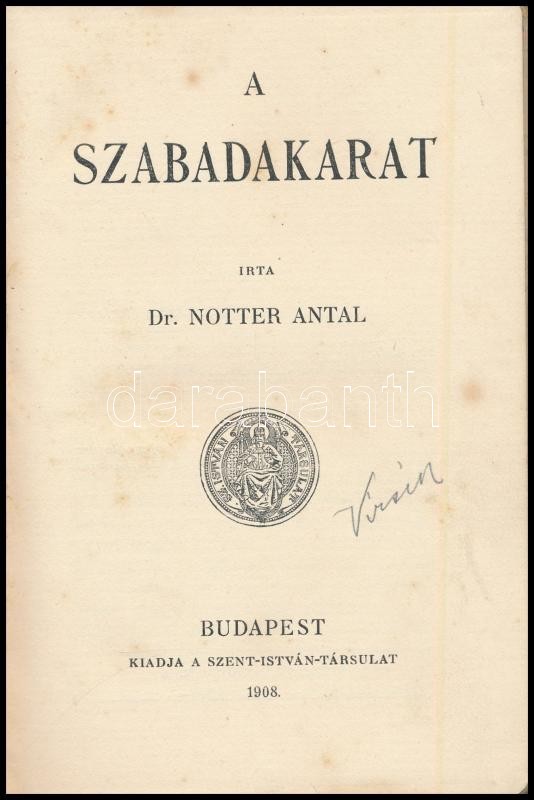Notter Antal: A szabadakarat. Bp., 1908, Szent István-Társulat. Kiadói...