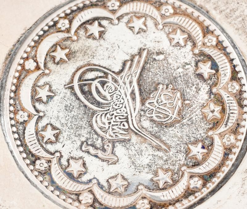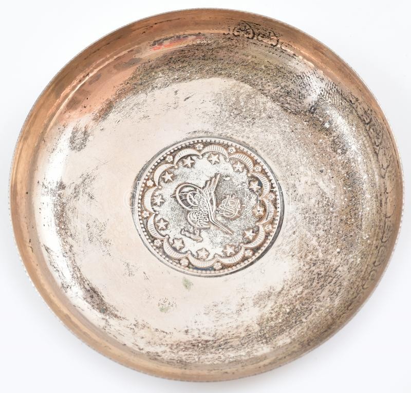 Ezüst (Ag) török tálka, vésett 1956, közepében érem, jelzés nélkül, vé...