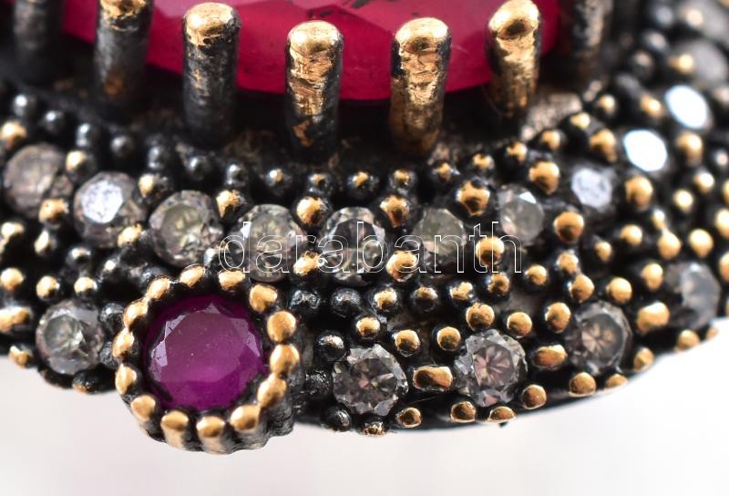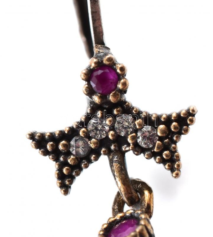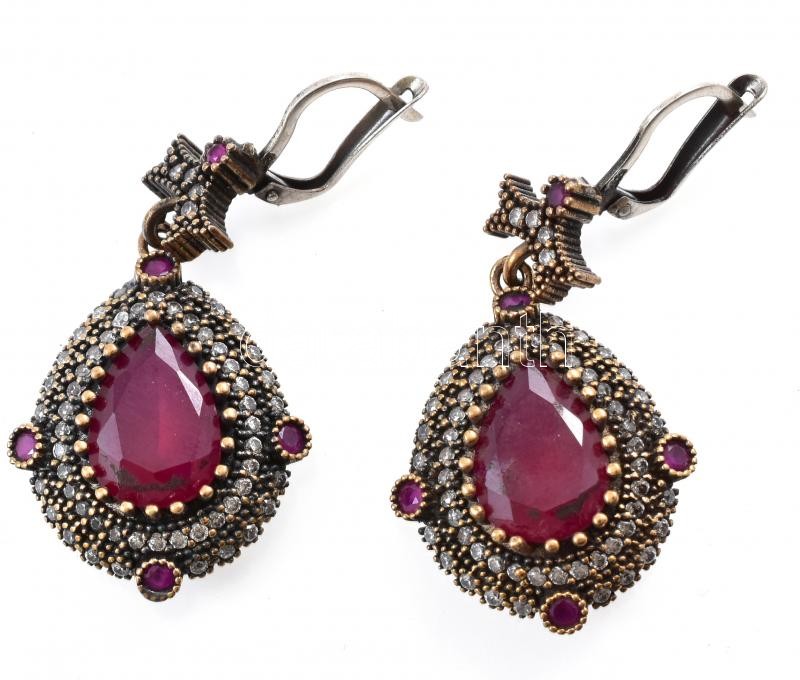 Ezüst(Ag) fülbevalópár rubinnal, jelzett, h: 4 cm, bruttó: 17 g