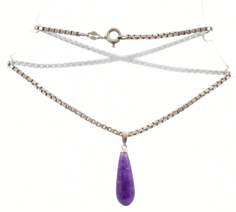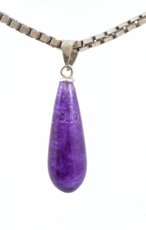 Ezüst(Ag) venezianer nyaklánc ametiszt függővel, jelzett, h: 36 cm, bruttó: 9,8 g