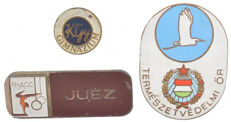 DN "KGY - Gimnázium" zománcozott fém jelvény (27mm) + DN "FNACC - JUEZ" festett jelvény (25x65mm) T:1-