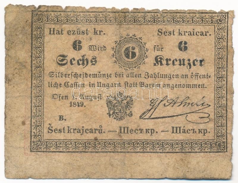 https://www.darabanth.com/en/419-Online-auction/419.0/Numismatics/Hungarian-Banknotes~2000008/1849-6kr-Almasy-B-sorozat-TIII--Hungary-1849-6-Kreuzer-Almasy-with-B-prefix-CVG-Ad~II2651231