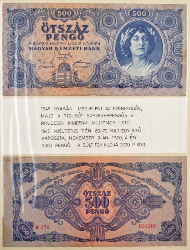 1930-1946. 75db-os bankjegytétel (+2xklf MNB bélyeg, +15db Adópengős illetékbélyeg) 2db fóliás fényképalbumba rendezve, a Pengő rövid történetét bemutatva. Közte 1946. 10.000AP nem kamatozó Pénztárjegy "Másra át nem ruházható", bélyegzéssel + 1946. 1.000.000AP nem kamatozó Pénztárjegy "Másra Át Nem Ruházható", bélyegzéssel T:II-III- Hungary 1930-1946. 75pcs banknote lot (+2pcs MNB stamps, +15pcs "Adópengő" duty stamps) Arranged in 2 foil photo albums, showing the short history of Pengő. Within 1946. 10.000 Adópengő non-interest savings certificate "Másra át nem ruházható (Non-transferable)", with cancellation + 1.000.000 Adópengő non-interest savings certificate "Másra át nem ruházható (Non-transferable)", with cancellation C:XF-VG