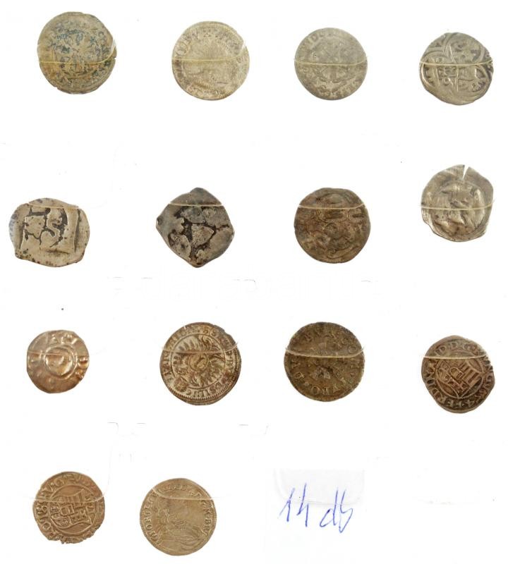 14db-os, vegyes magyar és külföldi, 16-17. századi Ag érmetétel, közte 1571K-B Denár Ag "Miksa" (0,48g) T:2-3