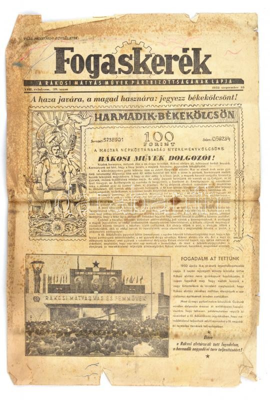 https://www.darabanth.com/en/419-Online-auction/419.0/Numismatics/Numismatics-documents-and-letters~2000003/Fogaskerek-ujsag-cimlapjan-bekekolcson-jegyzesi-reklammal-1952-szeptember-25-VIII-e~II2651621