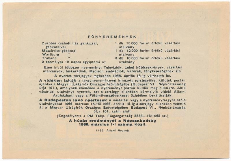 1967. "Magyar Újságírok Országos Szövetsége - Szerencse-Sorsjegy&...