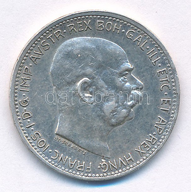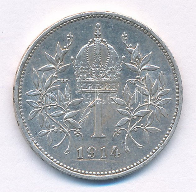 https://www.darabanth.com/en/419-Online-auction/419.0/Numismatics/Worldwide-silver-and-metal-coins~2000015/Ausztria-1914-1K-Ag-Ferenc-Jozsef-T2-karc--Austria-1914-Corona-Ag-Franz-Joseph-CXF-scratch~II2625339