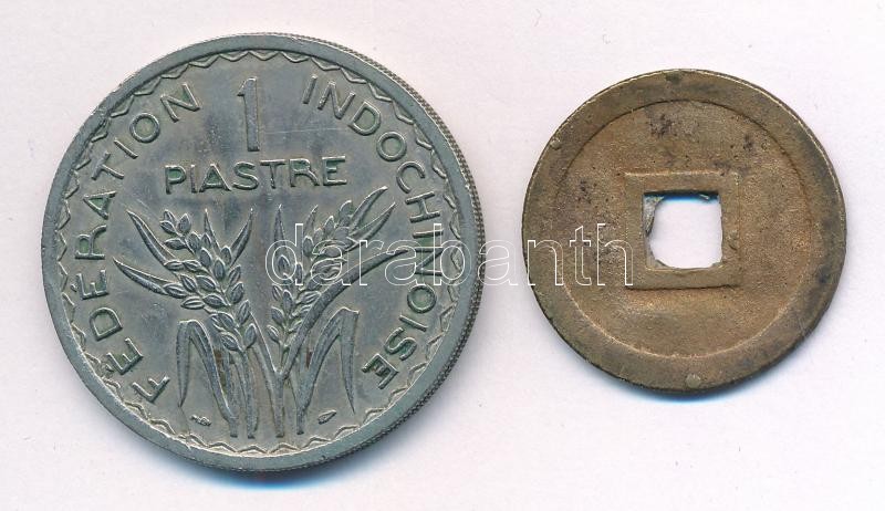 France Indo-China 1946. 1 Piastre Cu-Ni + Vietnam / Minh Mang ND (1822-1841) 1 Cash brass C:XF,VF patina
