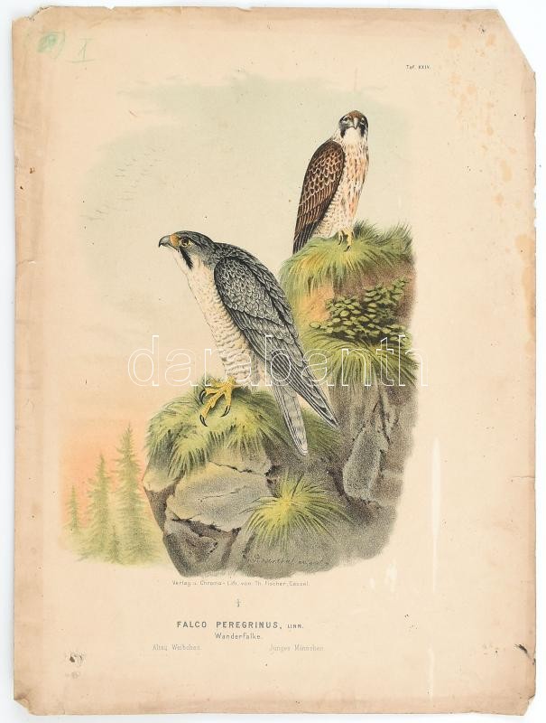 cca 1880 Sólyom nagyméretű litográfia tábla jelzett 30x40 cm