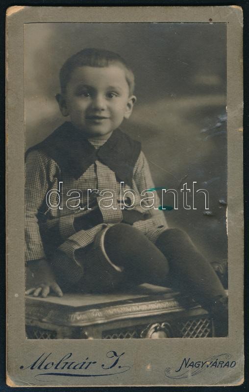cca 1900 Kisfiú portréja, keményhátú fotó Molnár J. nagyváradi műtermé...