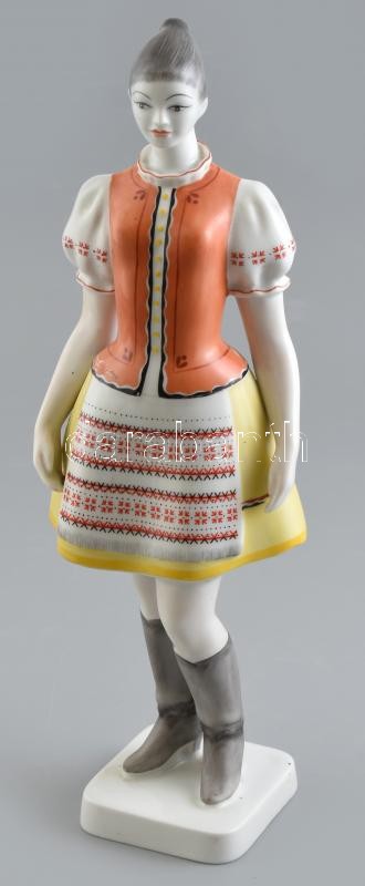 Hollóházi matyó menyecske. Kézzel festett, jelzett, ragasztott m: 30,5...