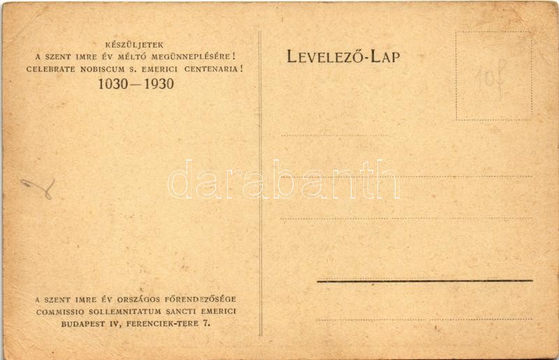 Dr. Serédi Jusztinián bíboros, hercegprímás, esztergomi érsek. Készüljetek a Szent Imre Év méltó megünneplésére! 1030-1930 s: Héya Zoltán (EB)